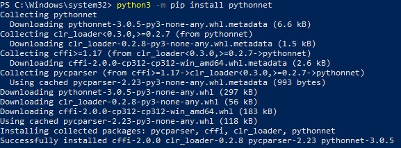 First of all you have to install PythonNET via PowerShell: