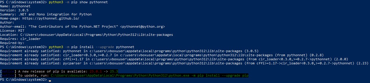 Also, you can check its version if you already have PythonNET installed and update it if necessary: